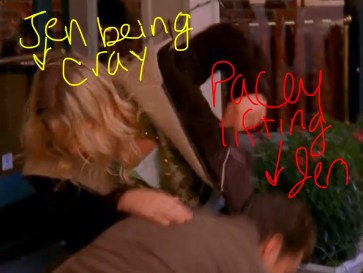Jen’s all hooking up with CMM, and it’s to the point where she seems him out at a restaurant with some girl after he told Jen he was working. Pacey attempts to stop Jen from going in there and ripping out his beautiful head of hair and hilarity ensues #PaceyWitterDreamMan