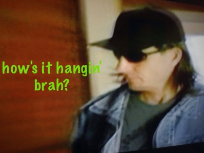 T: He gets caught in Texas while a passenger in a RED CAR eating a salad. This is a true story. the cop asked his name multiple time and he kept eating the damn salad.