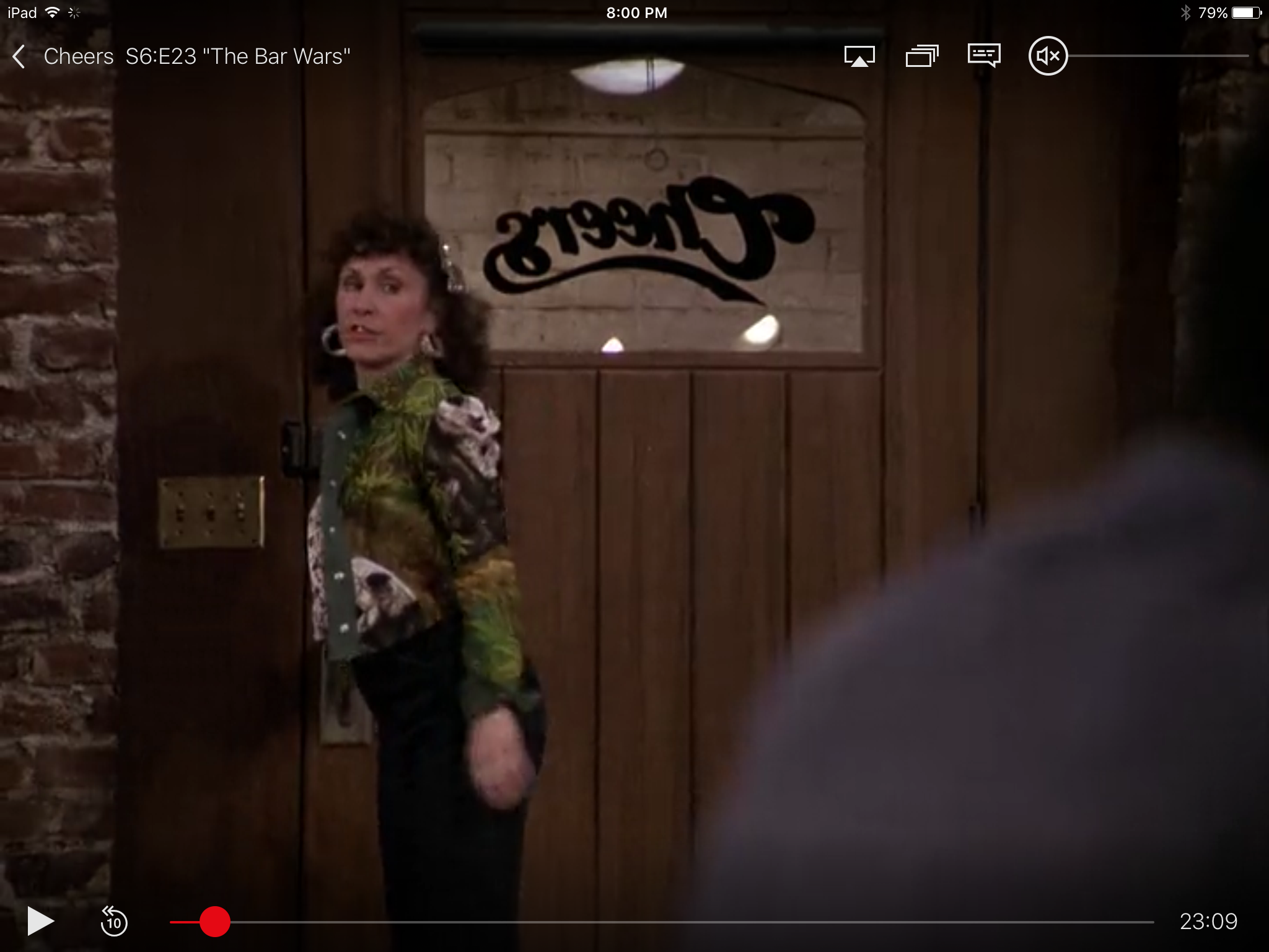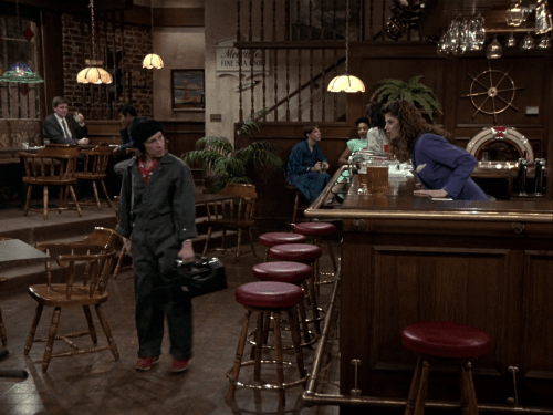 Not to mention, since the show focuses on the characters’ lives AT CHEERS, it’s always weird how they have to bring up a plot point that’s been “happening all along” (like having a bowling team) but that somehow hasn’t come up.
