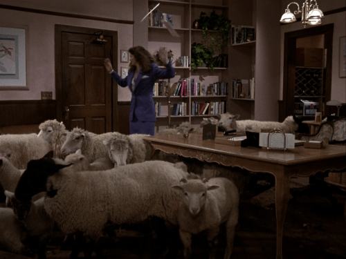 We’ve fast forwarded through an entire season again, including Sam and Diane getting engaged (because Diane basically sued Sam and forced him to marry her) in season five. And then almost getting married. Literally about to say their I Dos when they don’t. Diane’s ex-fiance Sumner shows up again and tells her he gave her manuscript to a publisher and now she has the opportunity to really pursue her writing “career”. Sam insists she should follow her dreams and lets her go so she can focus on her book. IRL, Shelley Long wanted to focus on her movie “career” and also motherhood.