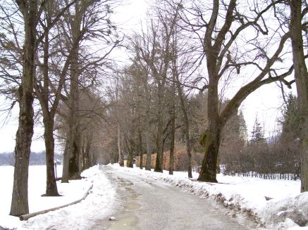 The grounds of this palace was used as Captain Von Trapp’s backyard, more specifically the lake, that you can obviously see so clearly here (it’s the giant patch of snow frozen over). This lake is the one Maria and the kids fell into when they were out rowing the boat in their curtain gear.