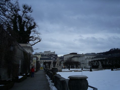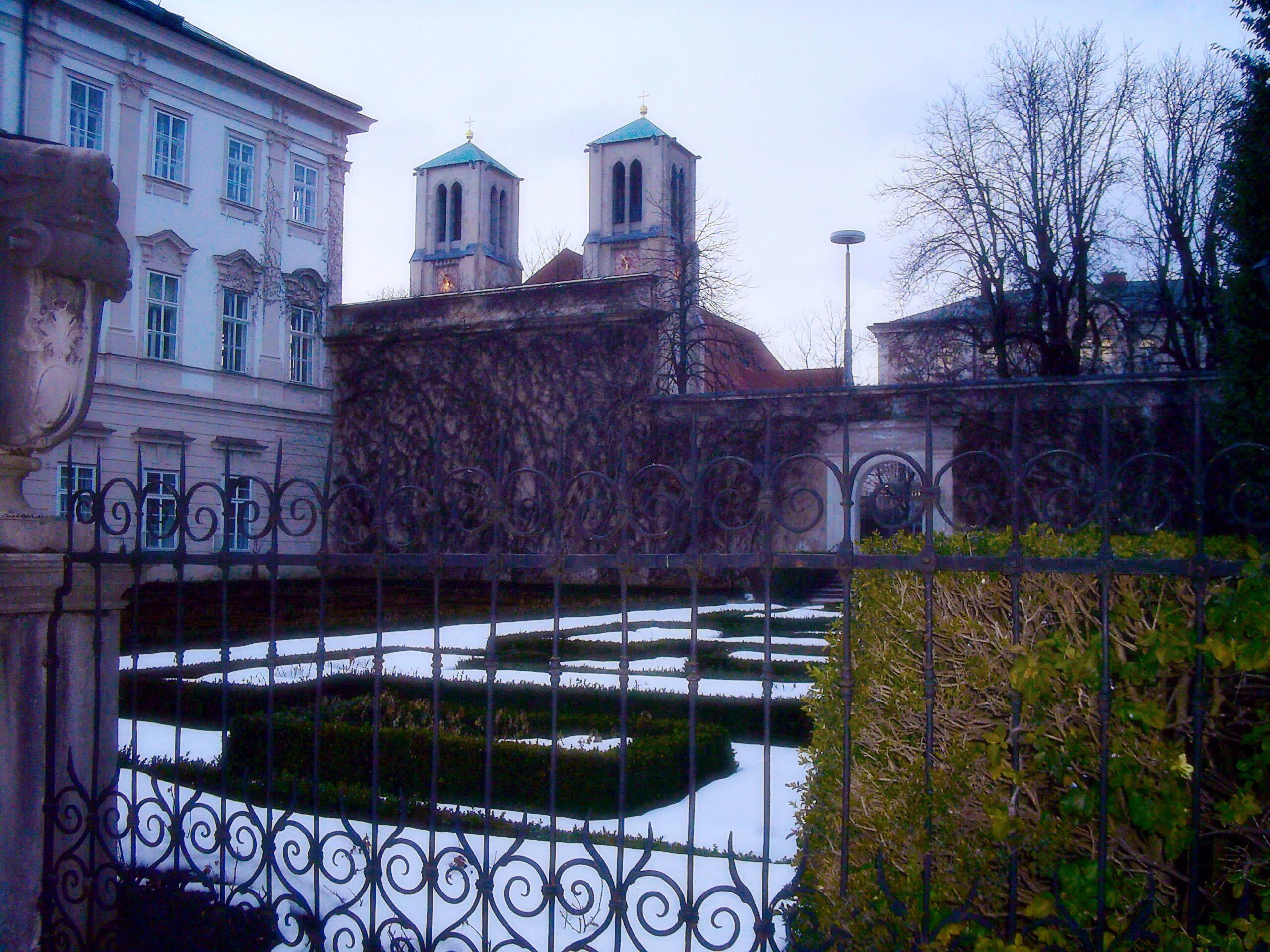 To preface, we went to Austria (as previously mentioned) in March. It is still winter there at this time. Because of that, it was cold and there was snow, but it didn’t deter (most of our tour). So, below are the gardens featured in the Do-Re-Mi scene, where Maria takes the kids running through Salzburg learning Solfège.